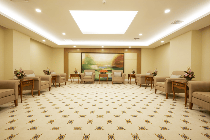 五星级宾馆式养护区,主要服务于半自理、非自理、认知障碍、舒缓疗护等长者,设置了52平方米VIP套间、52平方米豪华双人间、31平方米普通双人间等多种户型,房间内配备氧气装置,全方位保障长者的居住安全与舒适。每层均设有护士站,医护人员24小时在岗,随时关注长者的身体状况,及时提供医疗护理服务;同时配备先进的天轨移位系统,为长者站立、行走、康复、洗浴、如厕、室外活动等日常活动提供便捷保障,有效减轻长者及护理人员的负担,让半自理、非自理长者也能拥有独立、有尊严的生活。