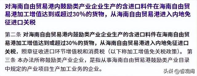海南最核心的杀手锏,就是“加工增值超30%免征进口关税”政策,再加上15%的企业所得税封顶优惠,直接把企业的利润空间拉满。